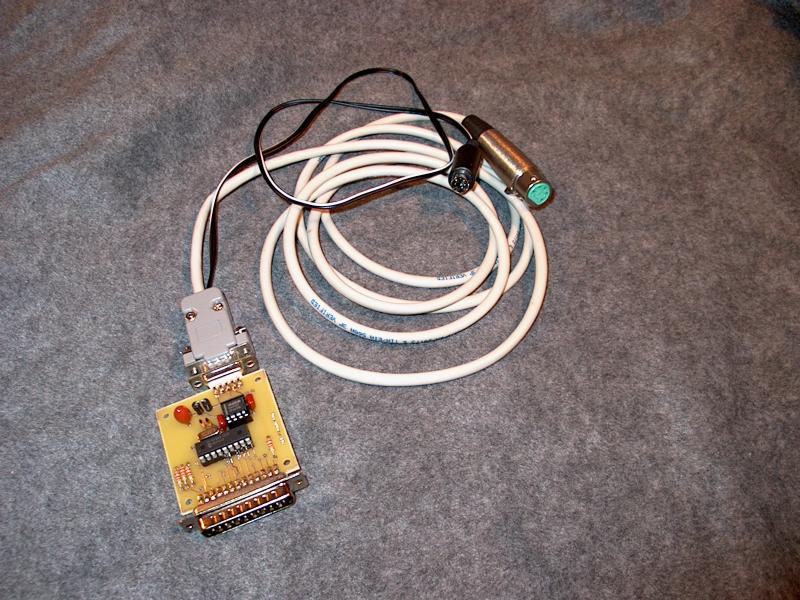 For initial testing and its first show, I simply made up a cable and used the bare board. To protect it, I put a cardboard box around the bare board (not shown). The cable assembly includes a 6-pin minidin connector for stealing power from the PC's PS/2 mouse port.